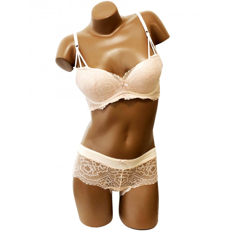 un soutien-gorge avec bretelles et petit noeud décoratif au milieu et de la culotte.