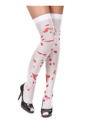 - Bas voile blanc avec impression tâches de sang rouge sur la paire de bas, c'est l'accessoire idéal pour compléter votre déguisement, lors d'Halloween.