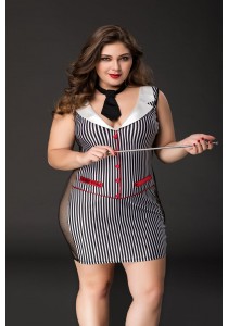 - Costume de professeur d'école stricte réalisé par un ensemble top culotte en semi résille noir et tissu rayé gris, des manchettes assorties, d'une paire de bas résille, de fausse lunette et de la cravache (règle). Attention à ne pas prendre un coup de règle sur les doigt.... - Composé de 90% polyester et 10% spandex En savoir plus24,00 € -