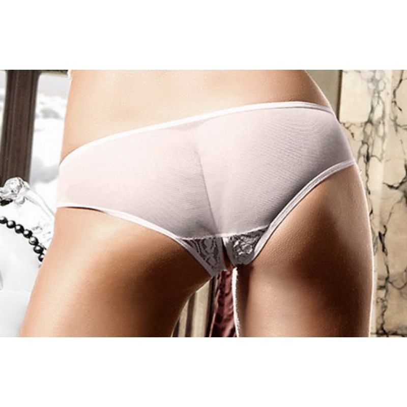 - Sublime culotte en dentelle blanc à motif floral avec un noeud papillon sur son milieu, bordurée de tulle plissé pour un effet froufrou. Elle est totalement ouverte à l'entre jambes pour des plaisirs simple et coquins.