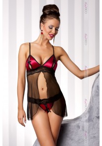 - Un ensemble porteur de sensualité. Accessoirisé chic, cet ensemble sera très raffiné et facile à porter de jour comme de nuit. La poitrine en matière satinée est entourée de dentelle à gansettes. Bretelles réglables. Noeud au creux des seins et voile transparent sur le buste. Culotte panty assortie.- 2 pièces- article présenté dans une jolie boîte carton coulissante Casmir