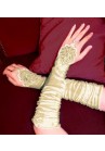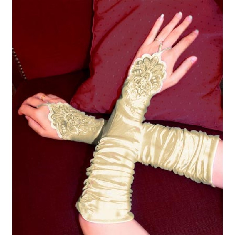 - Paire de Gants en satin blanc, ivoire, rouge ou noir incrustées de perles qui vous rendras à croquer pour toutes vos cérémonies grâce à sont motif floral et sa dentelle, maintenu par le majeur, d'une longueur de 37 cm.
