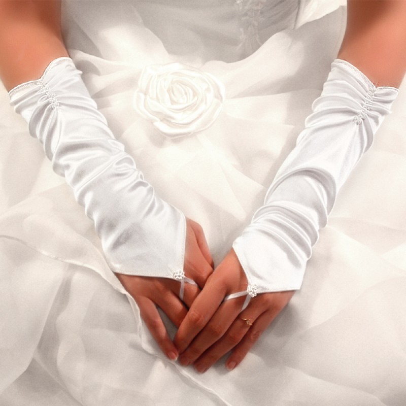- Gants en satin blanc incrustées d'une perles en forme de fleur arrondie entre le lien du majeur et le gants ce qui vous rendras à croquer pour toutes vos cérémonies, elle est plissé par deux rangées de perles sur l'avant, maintenu par le majeur, d'une longueur de 32 cm.