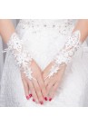 Gants Mitaines Court Blancs Strass Fleur Broderie