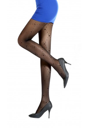- Collant voile noir aux motifs graphiques avec des losanges adoucis par des petits pois accompagné d'étoile à leur interceptions.