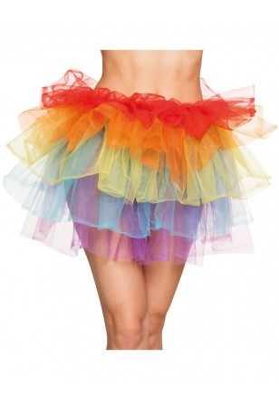 - Ce jupon multicolore en tulle, 6 rangées est un magnifique tutu avec différentes couleurs vives à chaque étage. De bas en haut vous aurez du rose, du violet, du bleu, du jaune, du orange et du rouge. Il est élastique "large" à la taille et avec ses 34 cm de long il fera un super tutu pour un grand nombre de déguisements lors du prochain carnaval ou spectacle.