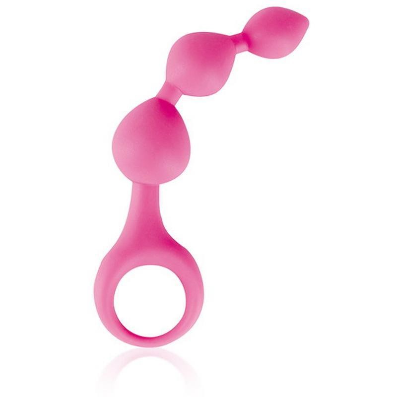- Ce sextoy en silicone adopte au repos une forme courbée qui facilite son introduction. Flexible, il est monté sur 3 maillons progressifs, le premier a la taille d'une noisette, le dernier à peu près celle d'une noix. D'une longueur optimale, il stimule à merveille et peut rester en place un moment. Un doigtier extra plat permet son extraction.