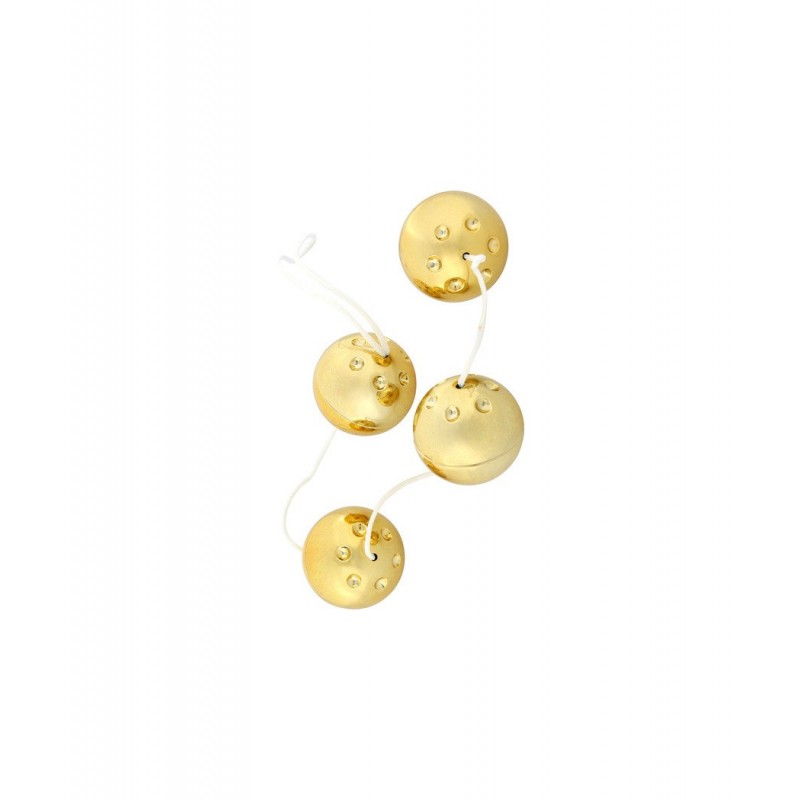- Élégantes boules stimulantes pour elle. Ensemble de 4 boules dorées de 3,5 cm de diamètre.