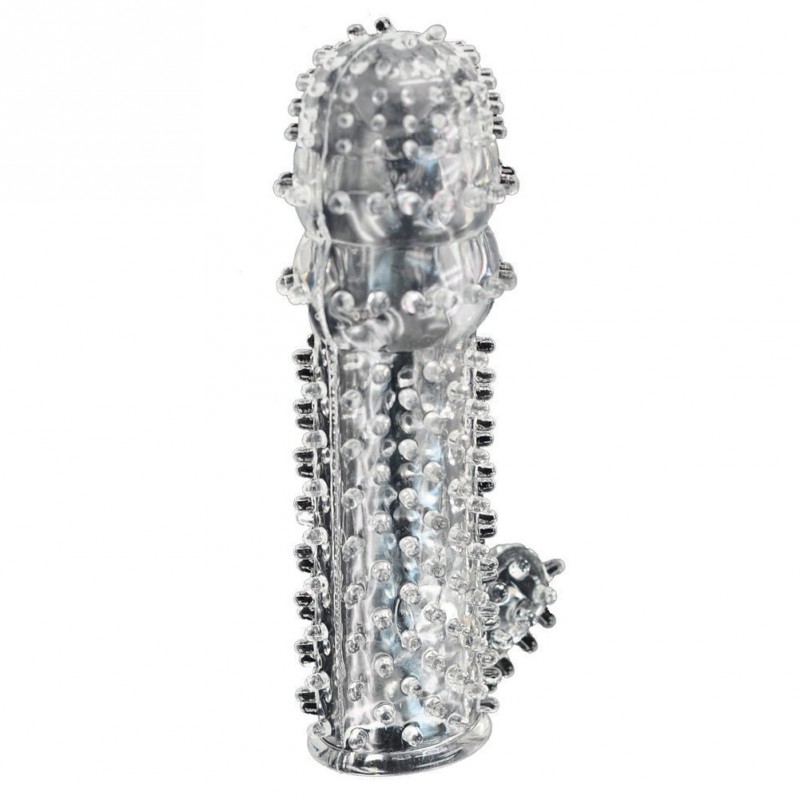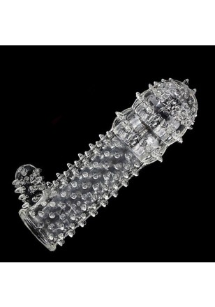 - Cette gaine à picots souples et réguliers s'enfile sur la verge, Une fois en place elle augmente réellement les dimensions de votre pénis et améliore les sensations grâce aux picots, un petit stimulateur clitoridien est placé sur le dessus pour votre compagne.