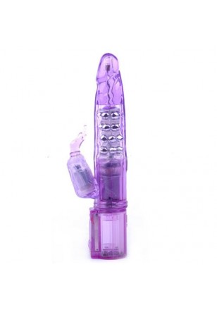 - Vibromasseur style Rabbit de couleur violet. Il est munis d'un stimulateur clitoridien en forme de rhinocéros, les 4 rangées de perles rotatives donne une stimulation intense et passionné. Il est doux et souple au toucher, waterproof, il pourra vous suivre dans la salle de bain. Il fonctionne avec 4 piles AA (non incluses)