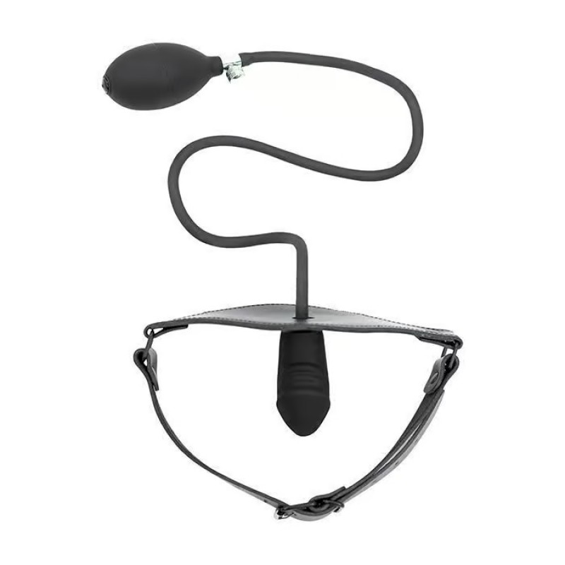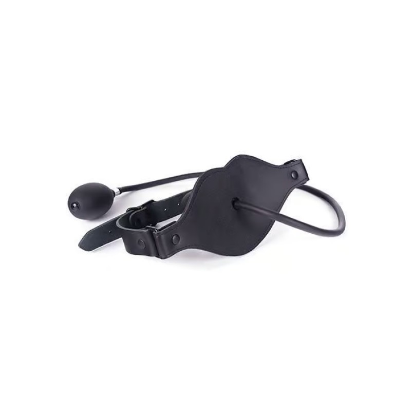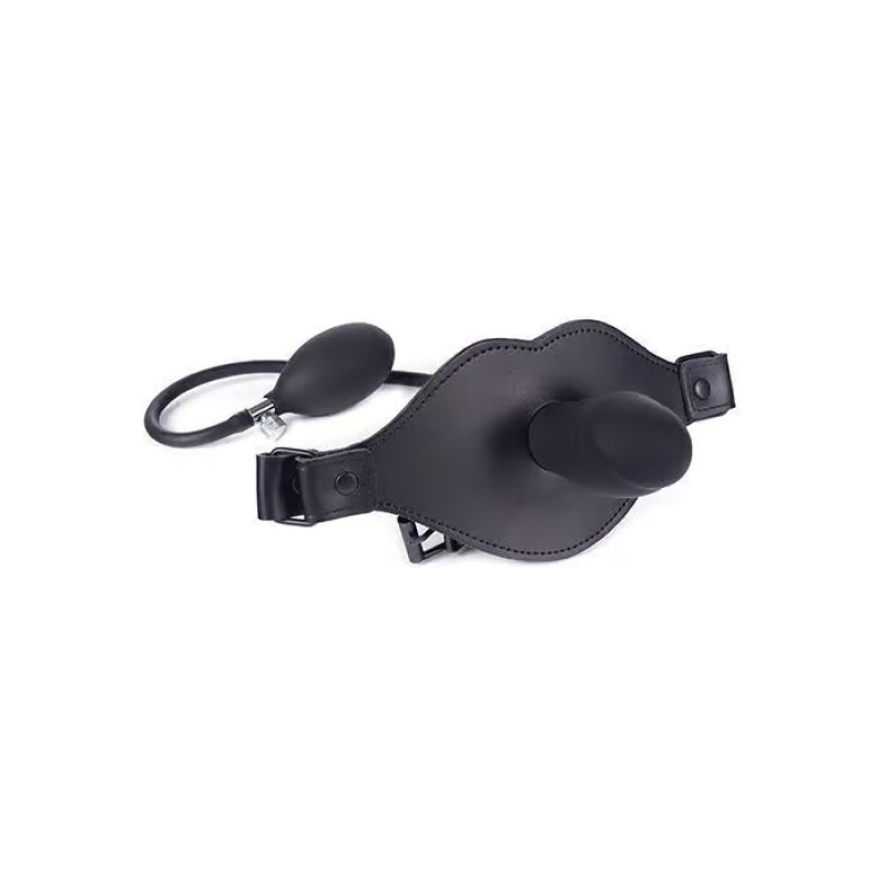 Ce gag de tête de pénis en silicone gonflable est sûr de garder votre partenaire de jeu dans un silence agréable. Le bâillon est gonflé au moyen d'une ampoule de pression, facilement pompé à la main et facilement dégonflé en libérant le bouton de pression. Cette pièce étonnante est maintenue en place par des sangles en cuir réglables de qualité supérieure.